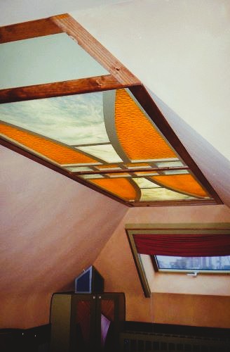 Glas in lood plafondluifel met verlichting
