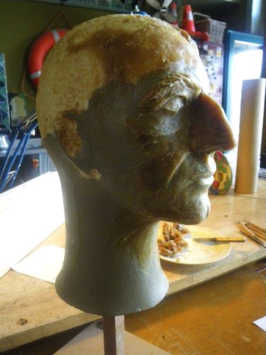 Boetseren mannenhoofd als hoedenstaander