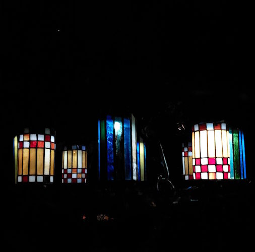 Tuinluster smeedijzer met glas in lood