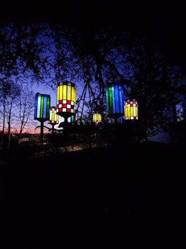 Tuinluster smeedijzer met glas in lood
