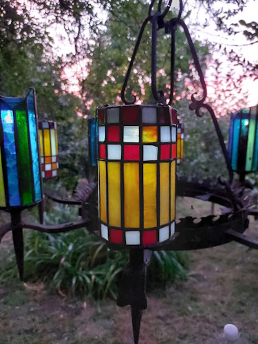 Tuinluster smeedijzer met glas in lood