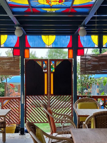 De pergola in de tuin van Het Blauwe Huis