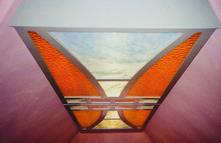 Glas in lood plafondluifel met verlichting