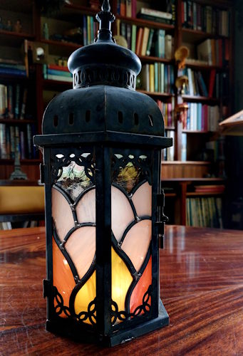 Tuinlampje smeedijzer en Tiffany glaskunst