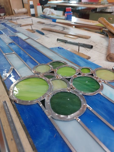 Atelierwerk maken glas in lood waterval